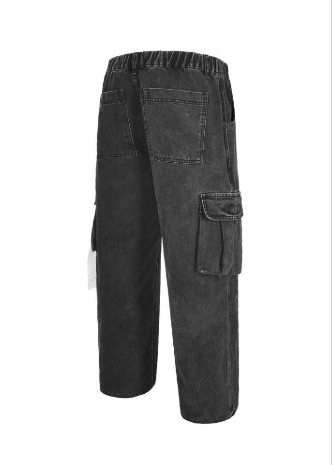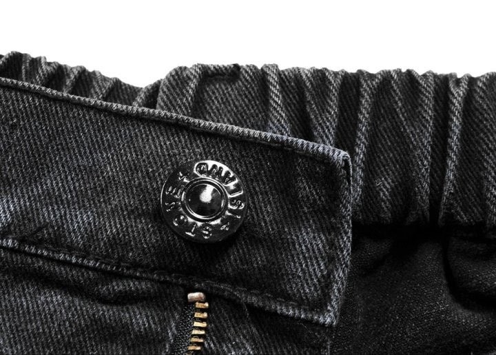 가장 기본적이면서 필수적인 흑청 데님 팬츠입니다. 힙부터 여유롭게 일자로 떨어지는 와이드 핏에 허리 밴딩과