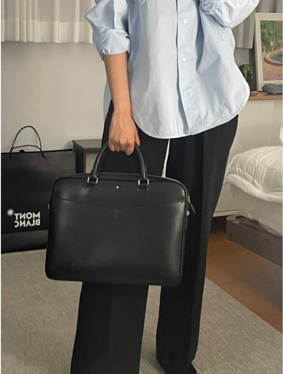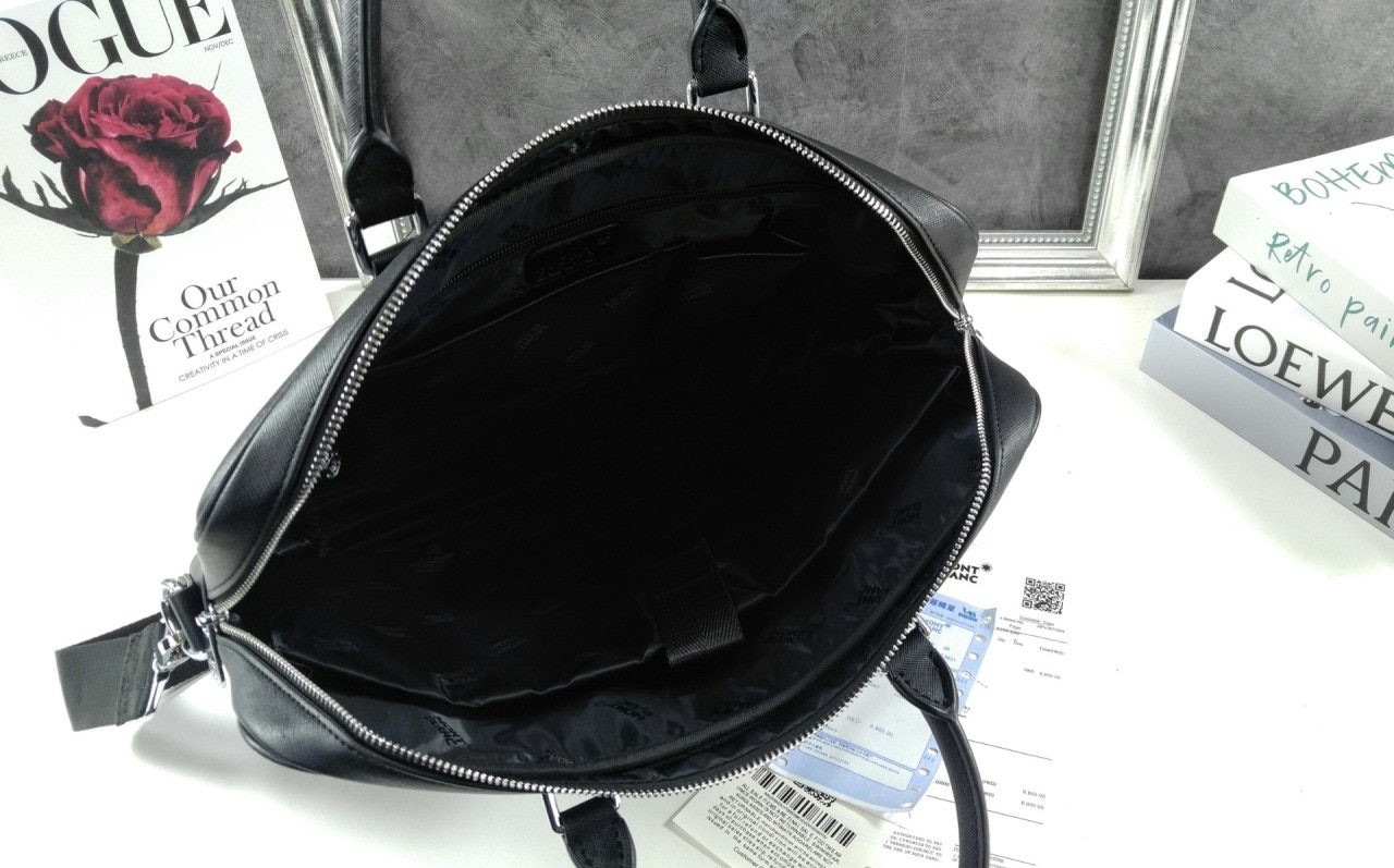 슬림하면서도 스타일리시한 도큐먼트 케이스는 비즈니스 룩에 세련된 매력을 더해 줍니다. 고급스러운 블랙 레더 소재에 모듈러 기능을 갖춘 아이템에 작은 액세서리를 더하여 나만의 개성이 돋보이는 룩을 연출해 보세요. 아름다운 필기를 예찬하는 디자인의 핸들과 더욱 큰 사이즈로 재현된 몽블랑 엠블럼이 핵심 디테일로 손꼽힙니다.