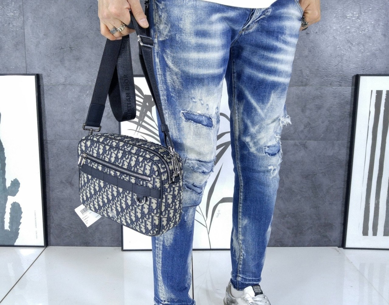 탈부착 및 길이 조절 가능한 Chr*stian Di*r 나일론 자카드 숄더 스트랩