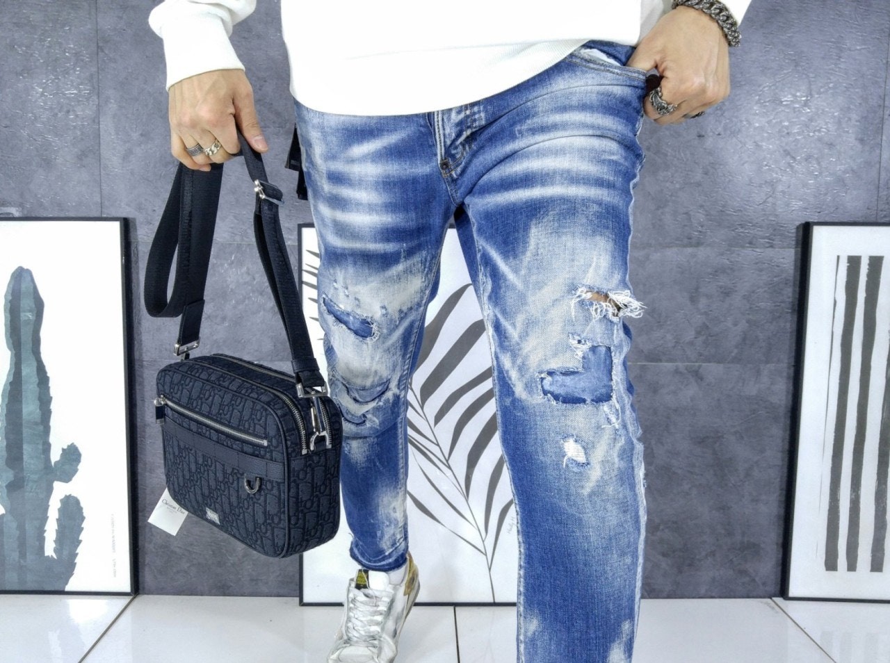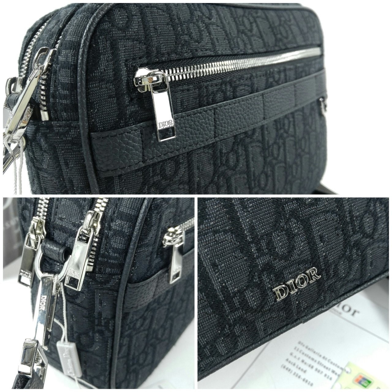 실용적인 맥시 실루엣으로 새롭게 선보이는 홀마크 사파리 메신저 백입니다. 블랙 컬러의 Di*r Oblique 자카드 소재로 제작되었으며 블랙 그레인 송아지 가죽 디테일로 완성되었습니다. 지퍼 수납공간 2개, 앞면 포켓, 카드 슬롯에 모든 데일리 소지품을 간편하게 보관할 수 있습니다. 길이 조절 가능한 탈착식 Chr*stian Di*r 숄더 스트랩으로 구성되어 클러치, 숄더백, 크로스백으로 스타일링하기 좋습니다.