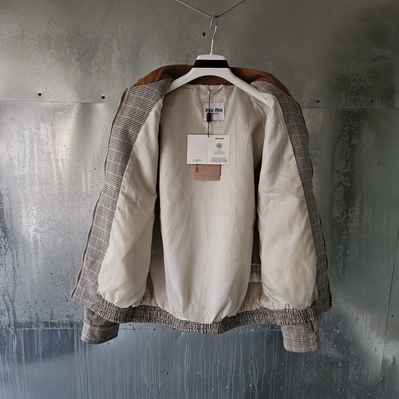 본 제품은 "미*** 체크 더블 위브 자켓 으로써 정규품 동일원단을 사용해 미우전문제작 공장에 오더를넣어 제작한 완벽한 상품입니다. 고급스러운 무드와 핏으로 편안하게 입으실 수 있으며 국내에서 흉내조차 내기 힘든 디테일이며 퀄리티 자부합니다.