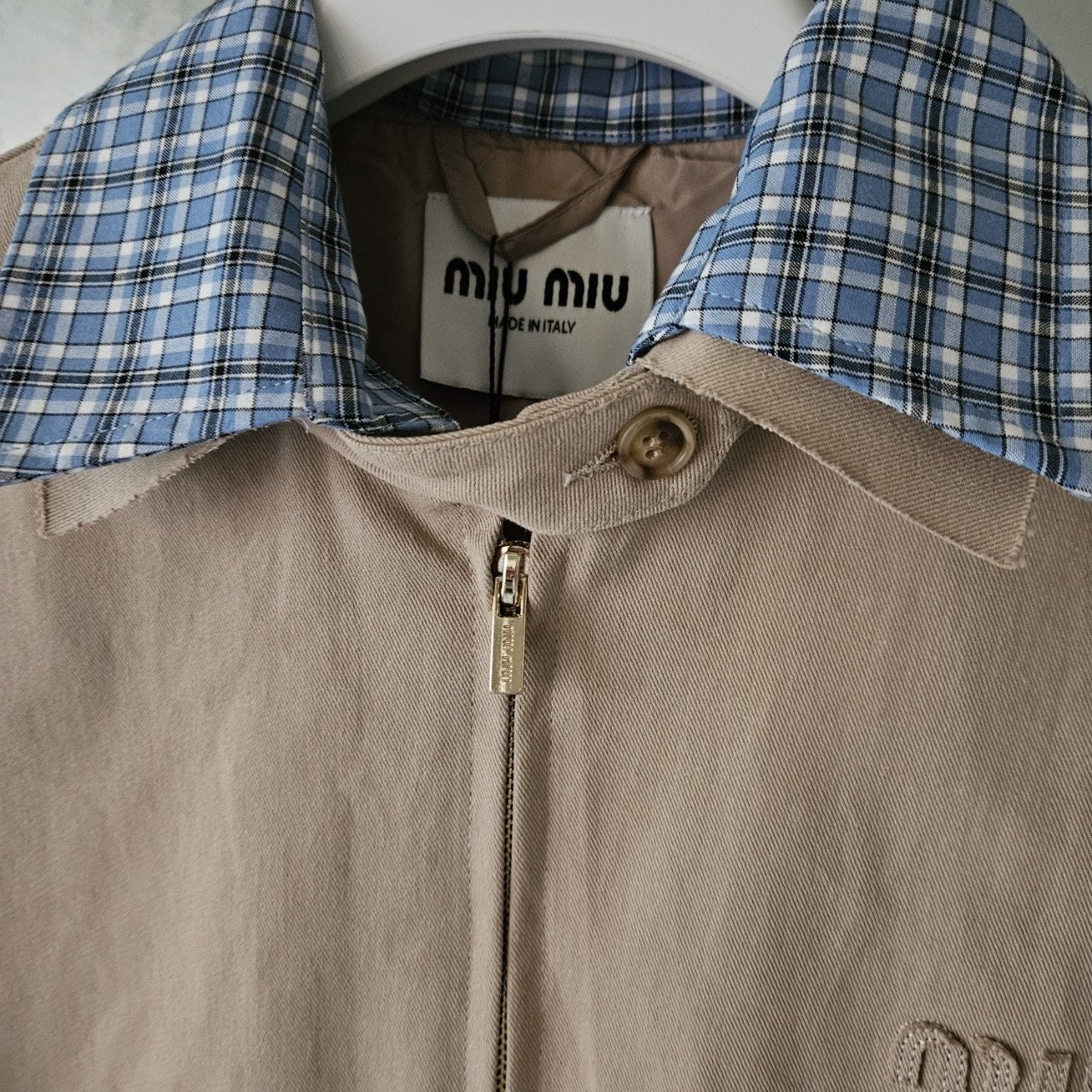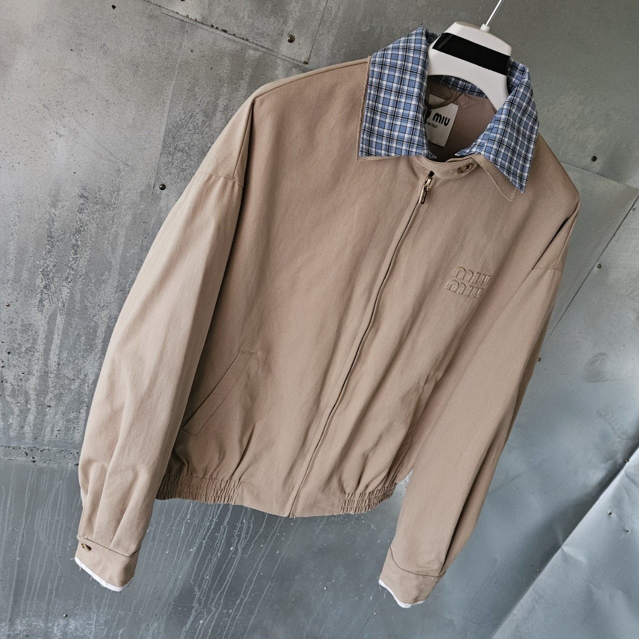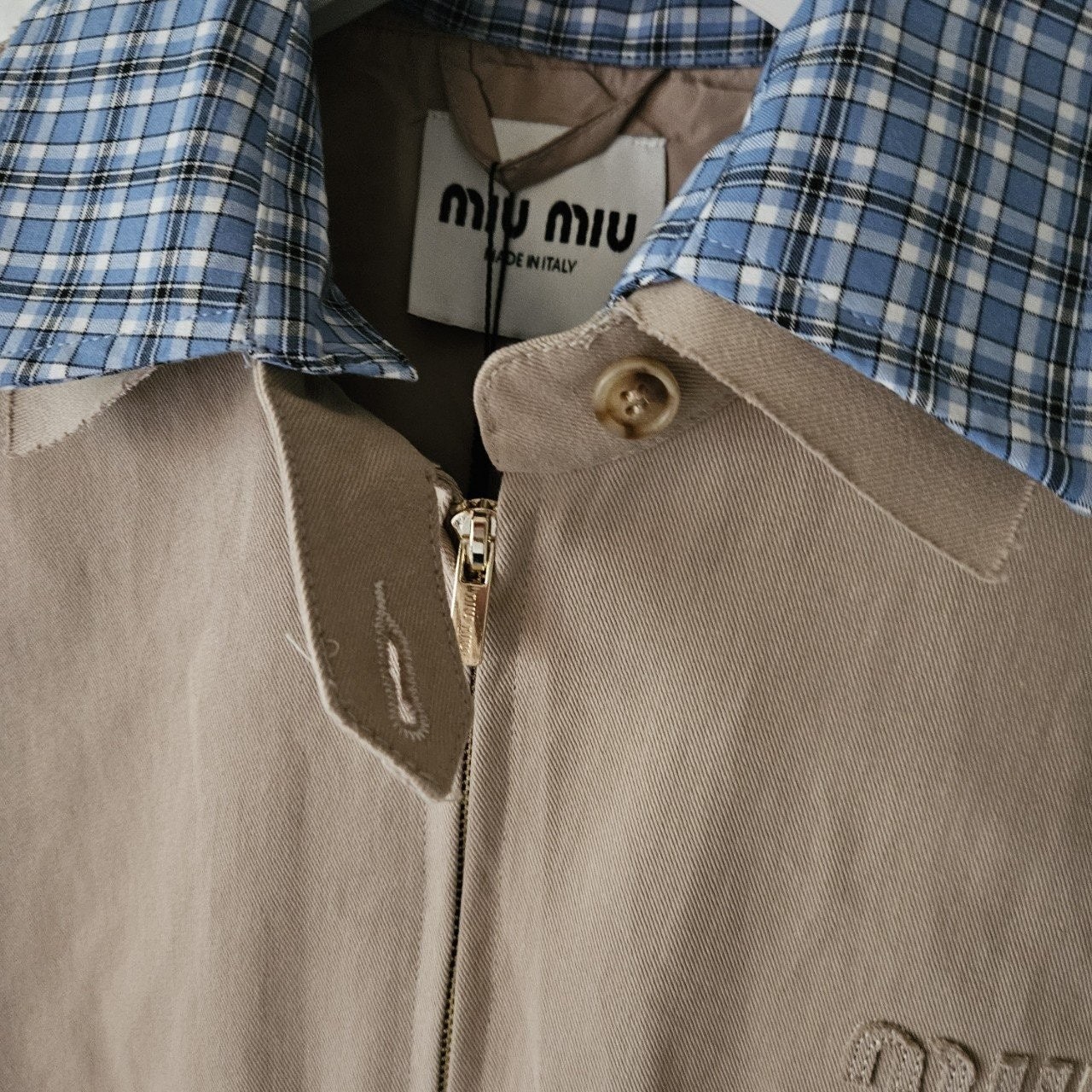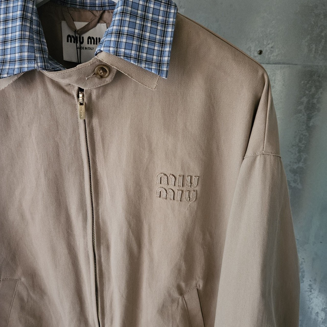 본 제품은 "미*** 치노 블루종 자켓 으로써 정규품 동일원단을 사용해 미우전문제작 공장에 오더를넣어 제작한 완벽한 상품입니다. 고급스러운 무드와 핏으로 편안하게 입으실 수 있으며 국내에서 흉내조차 내기 힘든 디테일이며 퀄리티 자부합니다.