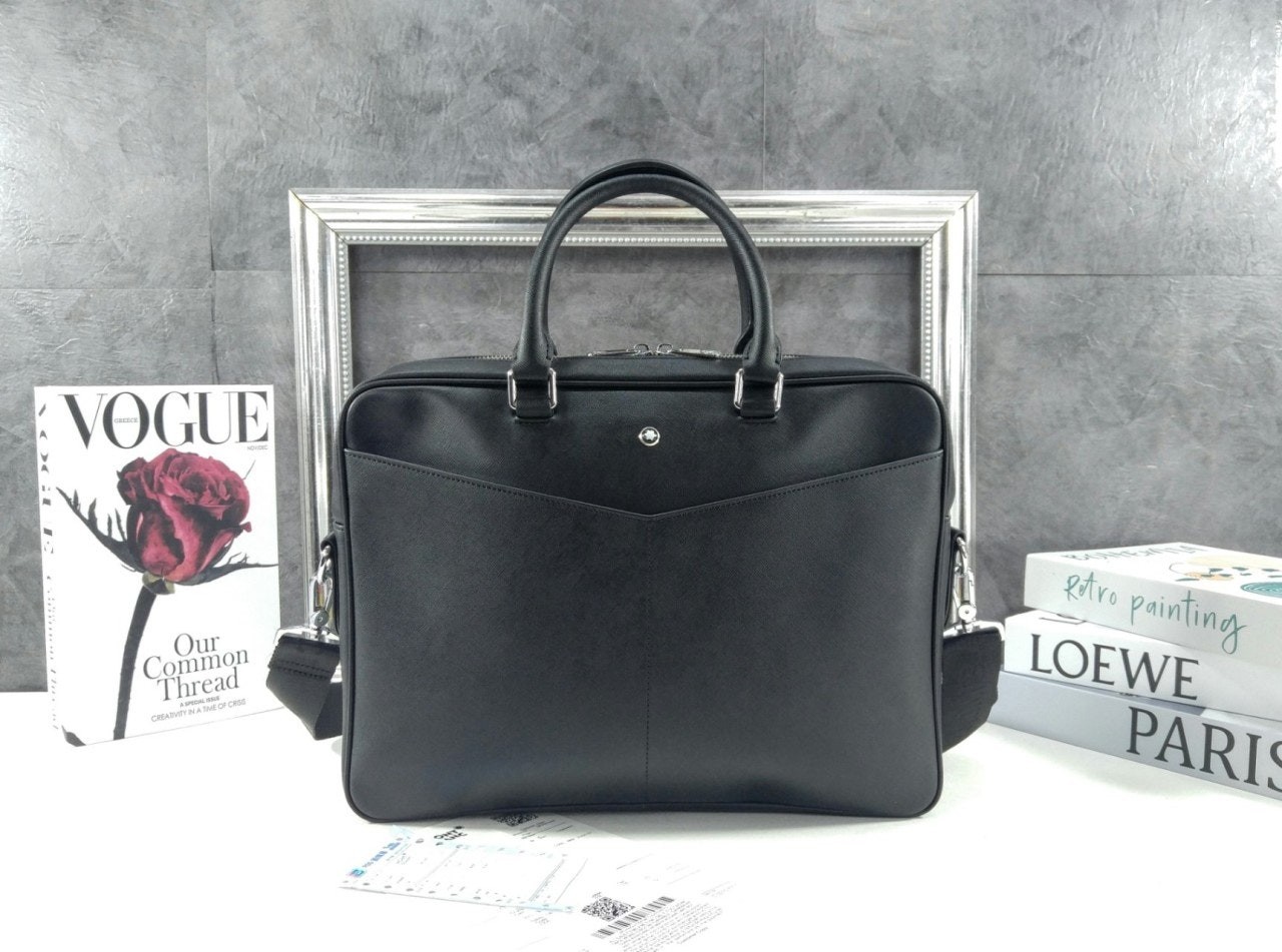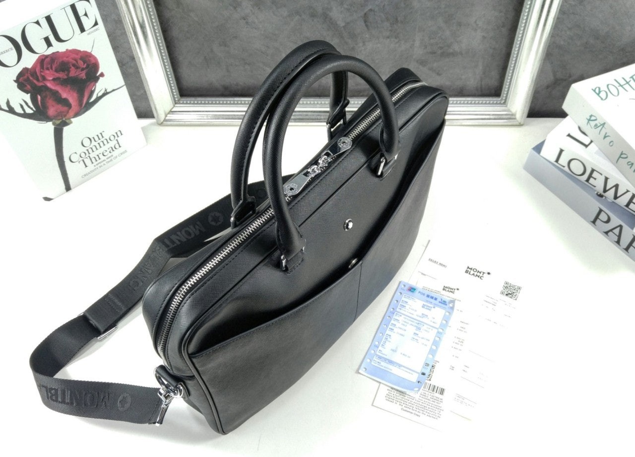 슬림하면서도 스타일리시한 도큐먼트 케이스는 비즈니스 룩에 세련된 매력을 더해 줍니다. 고급스러운 블랙 레더 소재에 모듈러 기능을 갖춘 아이템에 작은 액세서리를 더하여 나만의 개성이 돋보이는 룩을 연출해 보세요. 아름다운 필기를 예찬하는 디자인의 핸들과 더욱 큰 사이즈로 재현된 몽블랑 엠블럼이 핵심 디테일로 손꼽힙니다.