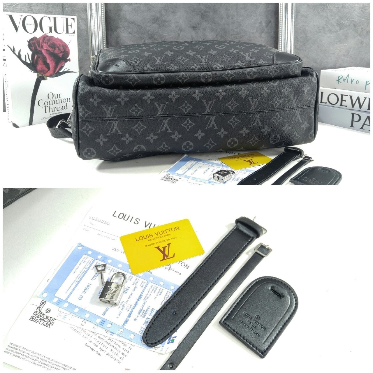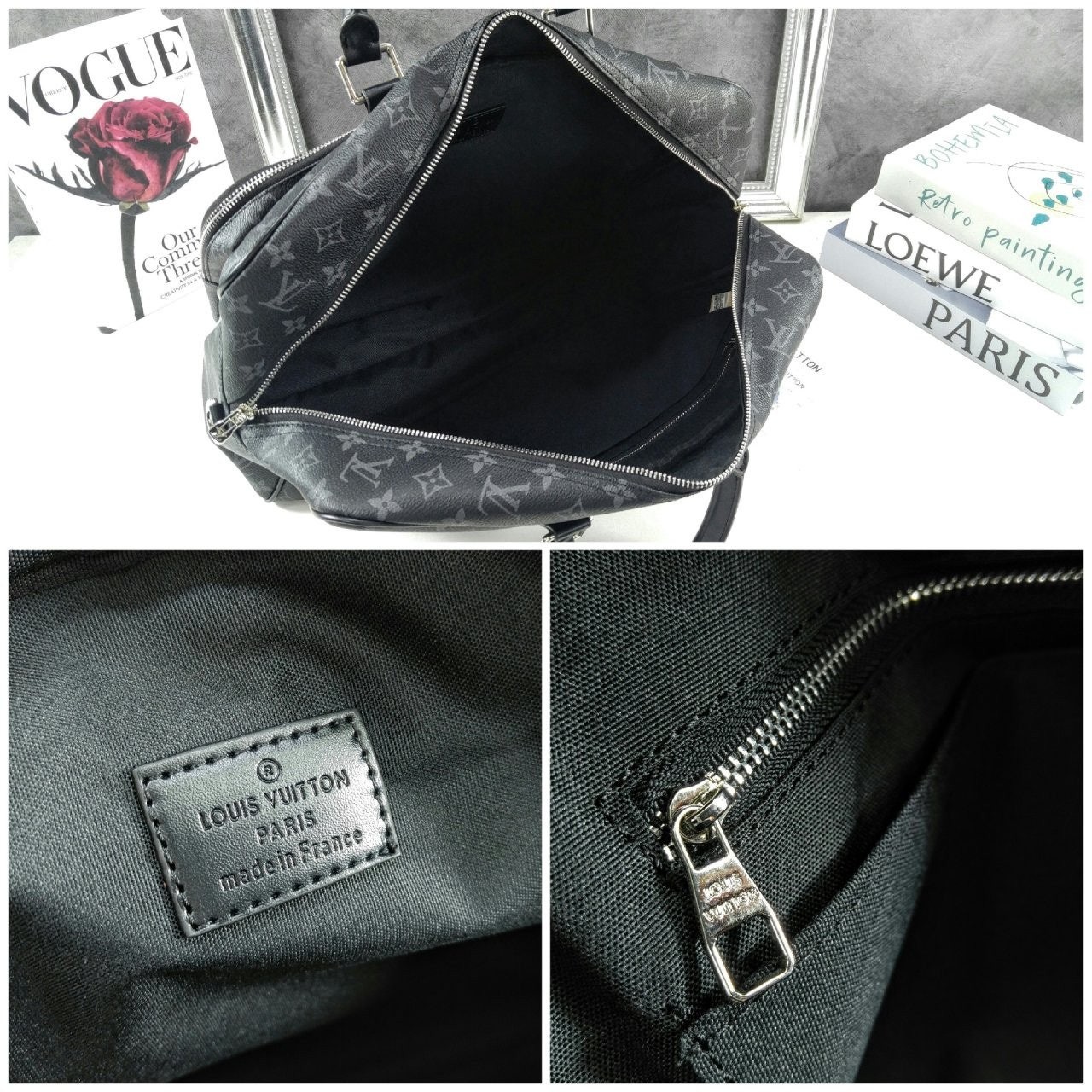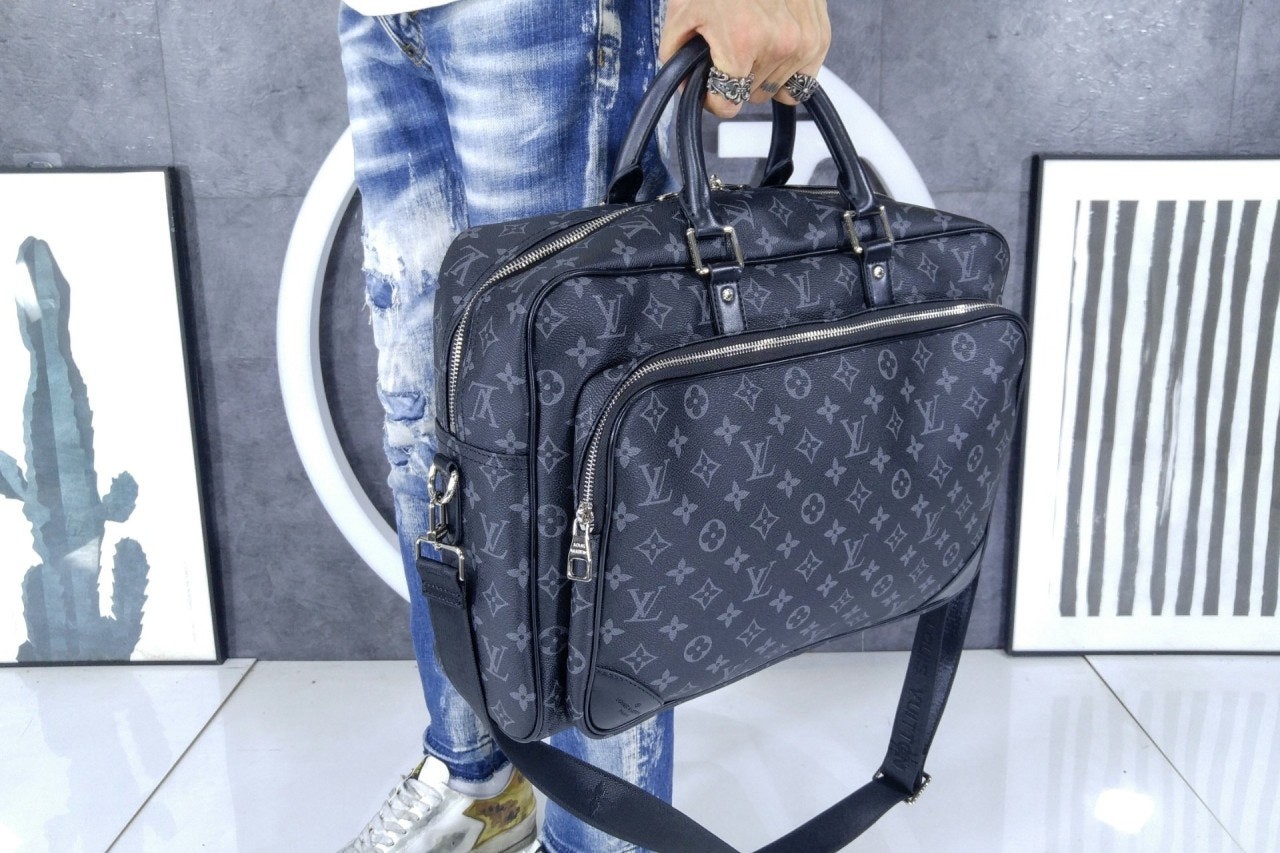 모노그램 이클립스 캔버스 소재로 선보이는 매력적인 위켄더 백. 호라이즌 롤링 수트케이스 위에 딱 맞게 올려둘 수 있는 크기. 뒤쪽의 밴드를 활용하여 수트케이스에 간편하게 부착할 수 있는 디자인. 앞면, 뒷면과 내부에 구성한 다양한 포켓. 손으로 들거나 숄더 백 또는 크로스 바디 백으로 연출할 수 있는 활용도 높은 아이템.